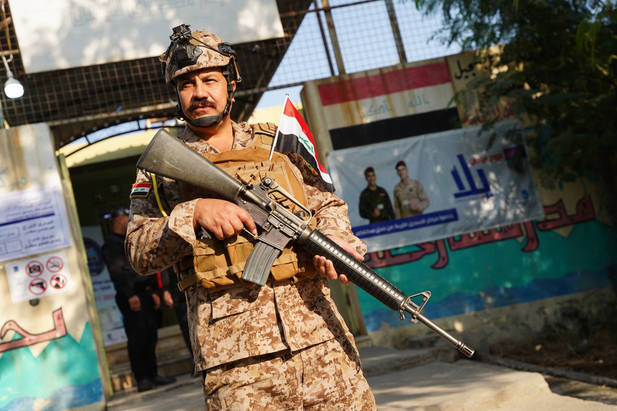 یک مأمور امنیتی در بیرون از مرکز رأیگیری در عراق (رویترز)