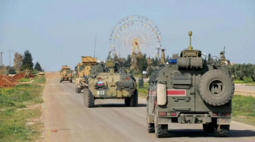 خودروی گشتزنی مشترک ترکیه با نیروهای روسی در سراقب در ادلب (آرشیویی - الشرق الاوسط)