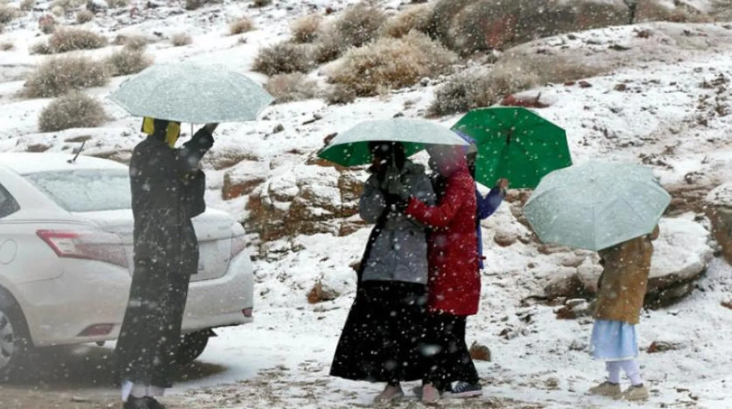 همزمان با آغاز سال نو بلندی های منطقه کوهستانی اللوز (بادام) در تبوک در شمال غرب سعودی و اطراف آن و استان طریف شنبه (۱ ژانویه) سفید پوش شدند و دما به زیر صفر رسید.